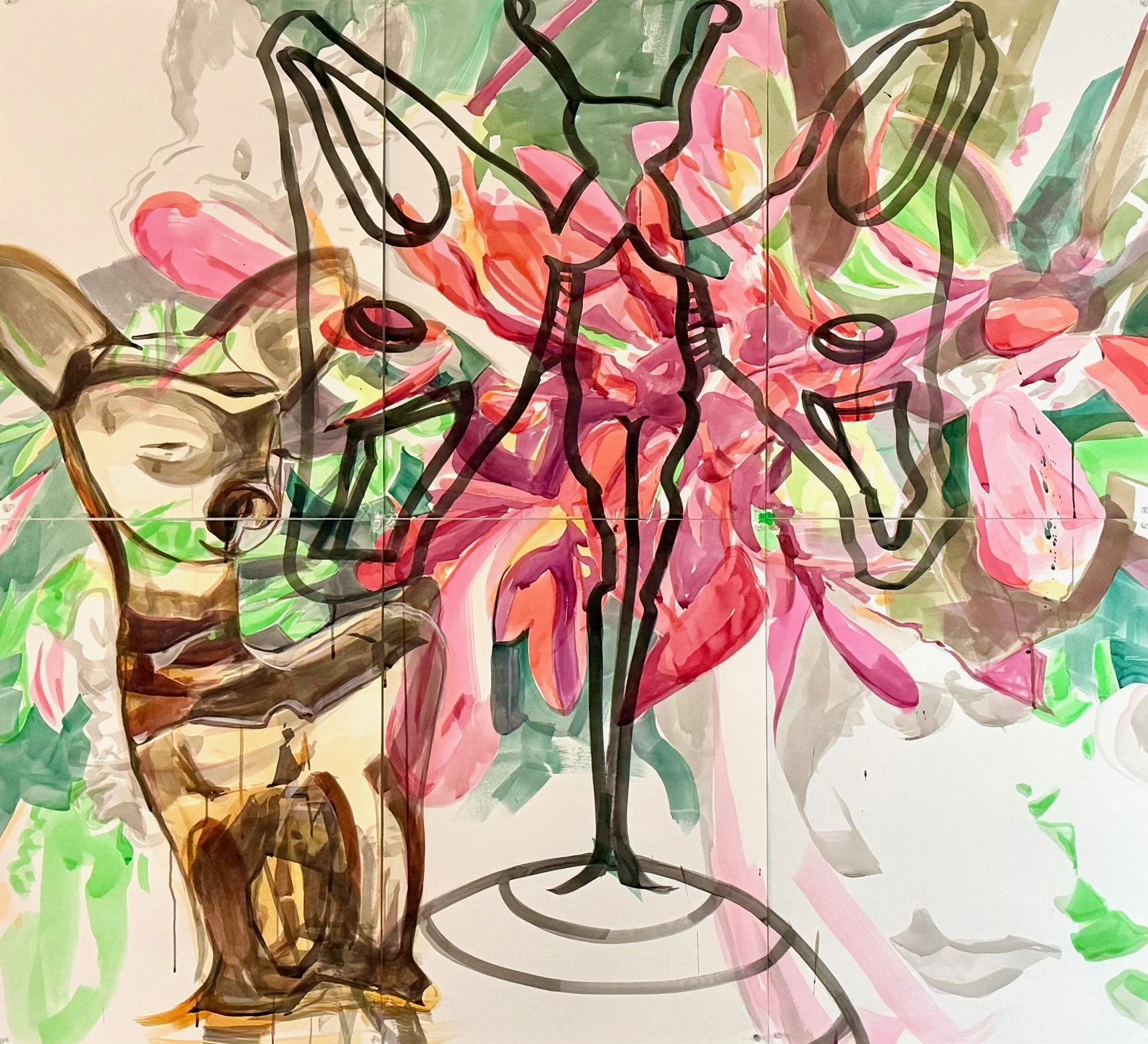 Embrace, Watercolor and gouache, 6 panels, on Fabriano paper, 60 x 66", 2025 (VCCA Residency)