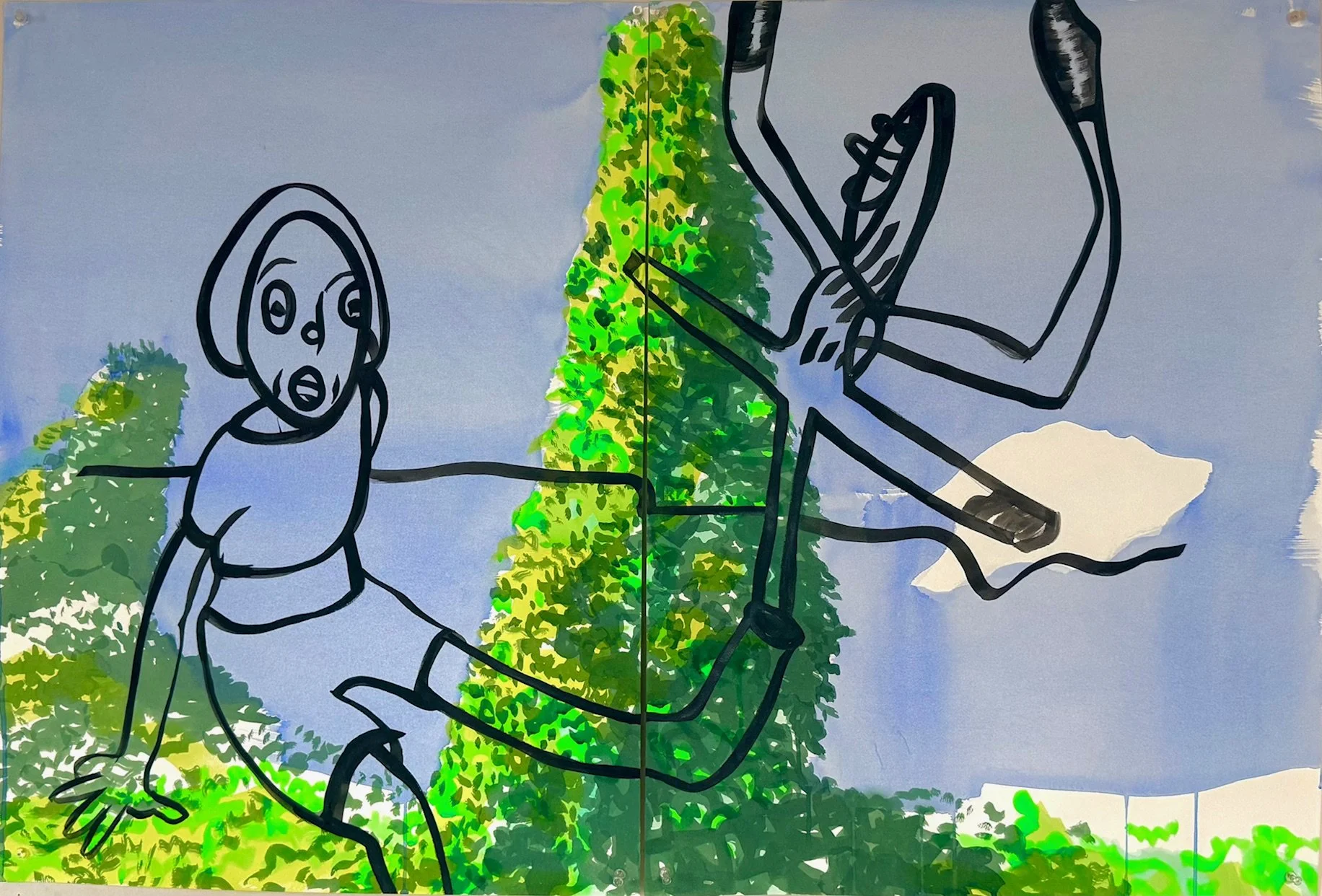 Angel, Watercolor and gouache, 6 panels Fabriano paper, 60 x 66", 2025 (VCCA Residency)